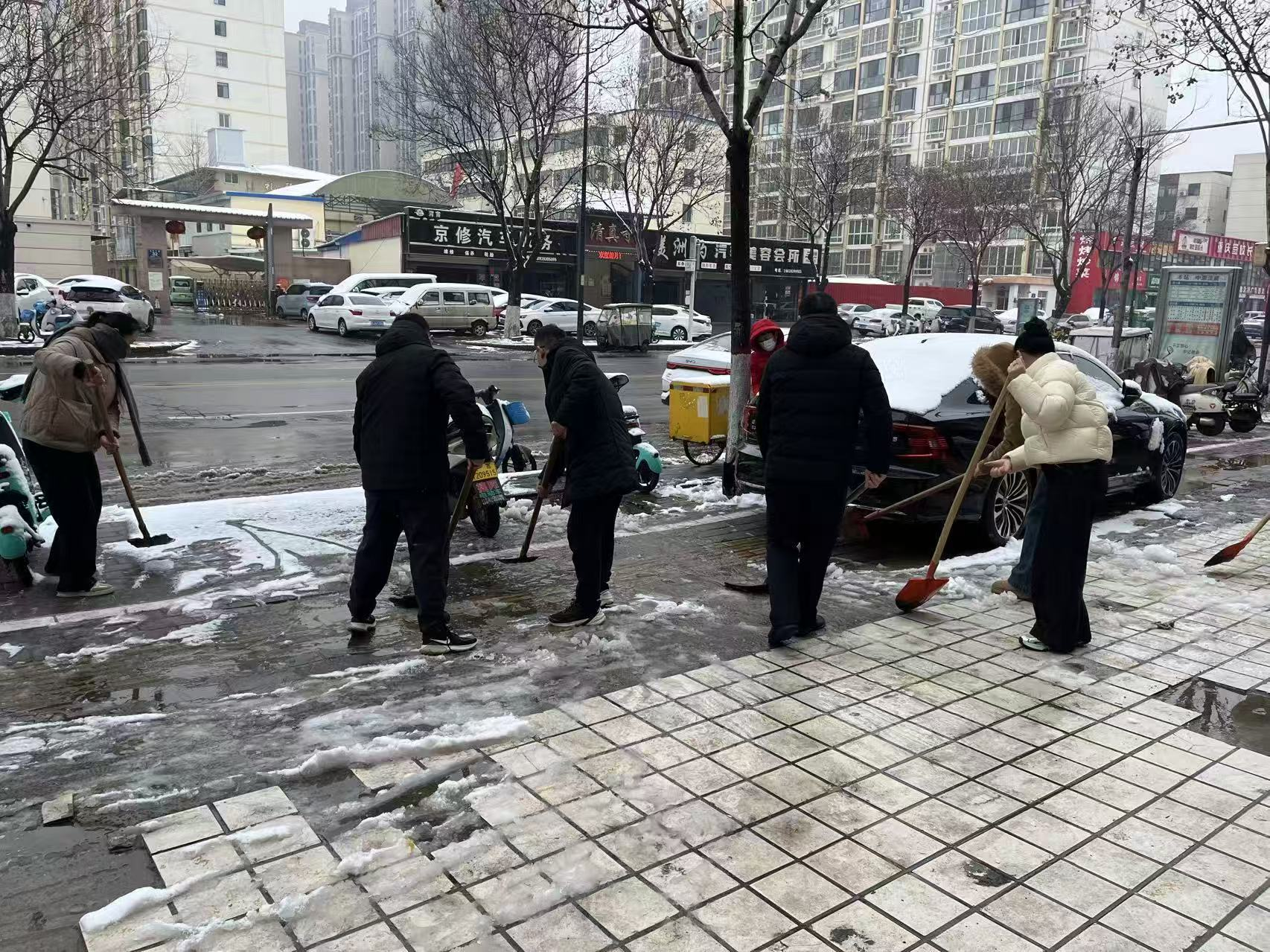 一是迅速组织力量,开展除雪作业。局机关迅速组织干部职工32人,分成三个工作组,领导班子成员带头分别对院内及长庆路(中原路至任丘路段)责任路段开展人工除雪除冰。大家不畏严寒、分工协作,及时清理路面积雪结冰,确保机关办公环境有序运行,保障分包路段通行安全。