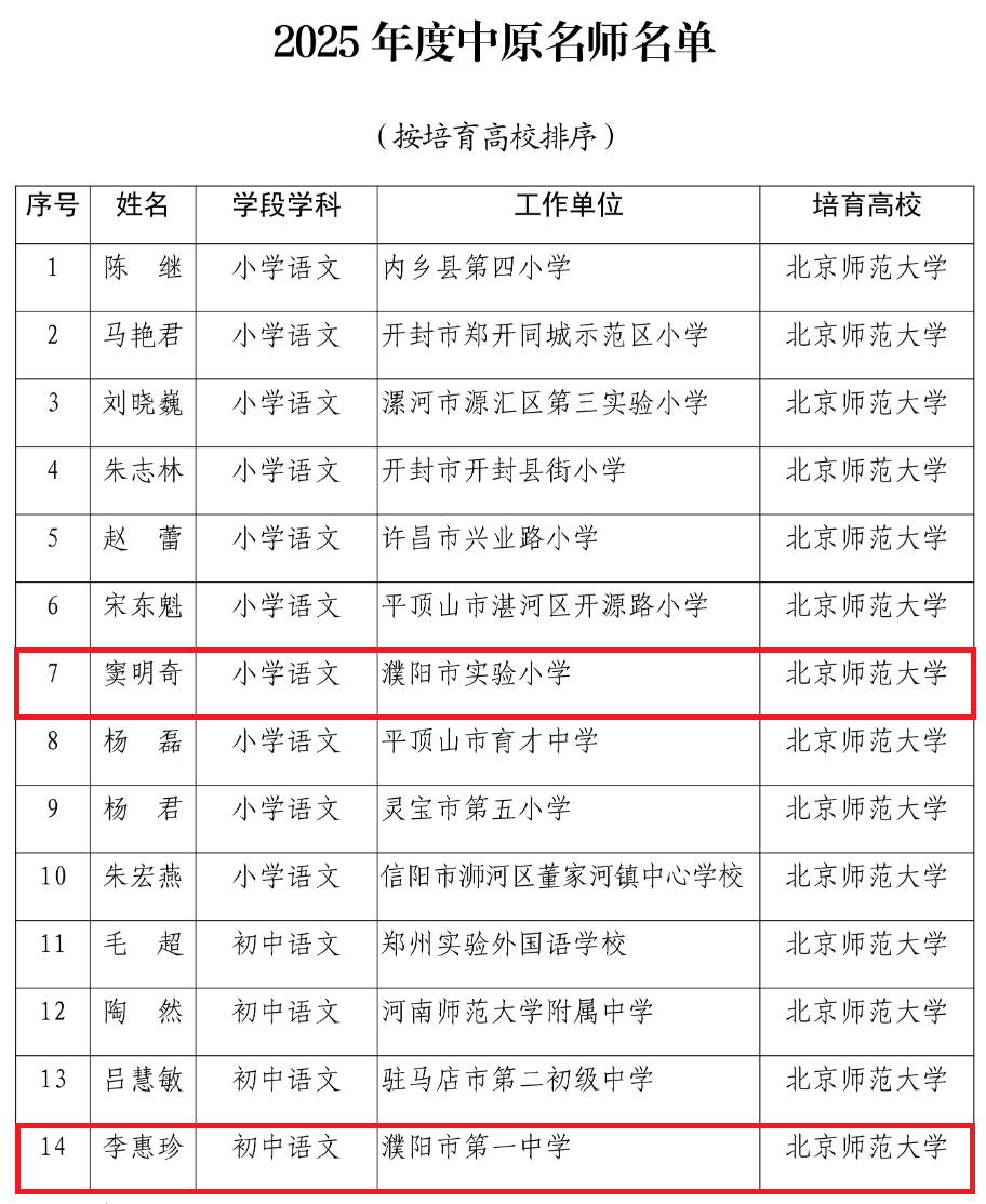 喜讯!华龙区3人入选!2025 年度中原名师名单公布